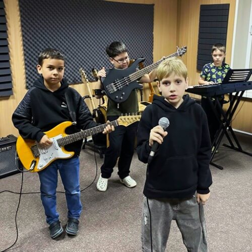 Занятия всегда проходят очень весело, в игровой форме дети решают музыкальные задачки. Самое любимое на уроках – конечно же, игра в рок-группе. Но, прежде нужно освоить азы различных инструментов рок-ансамбля. Ребята по кругу проходят по всем инструментам, мы это называем «вертушка»))) В итоге, каждый осваивает азы игры на электрогитаре, барабанах, клавишах, бас гитаре и каждый пробует себя в роли вокалиста.